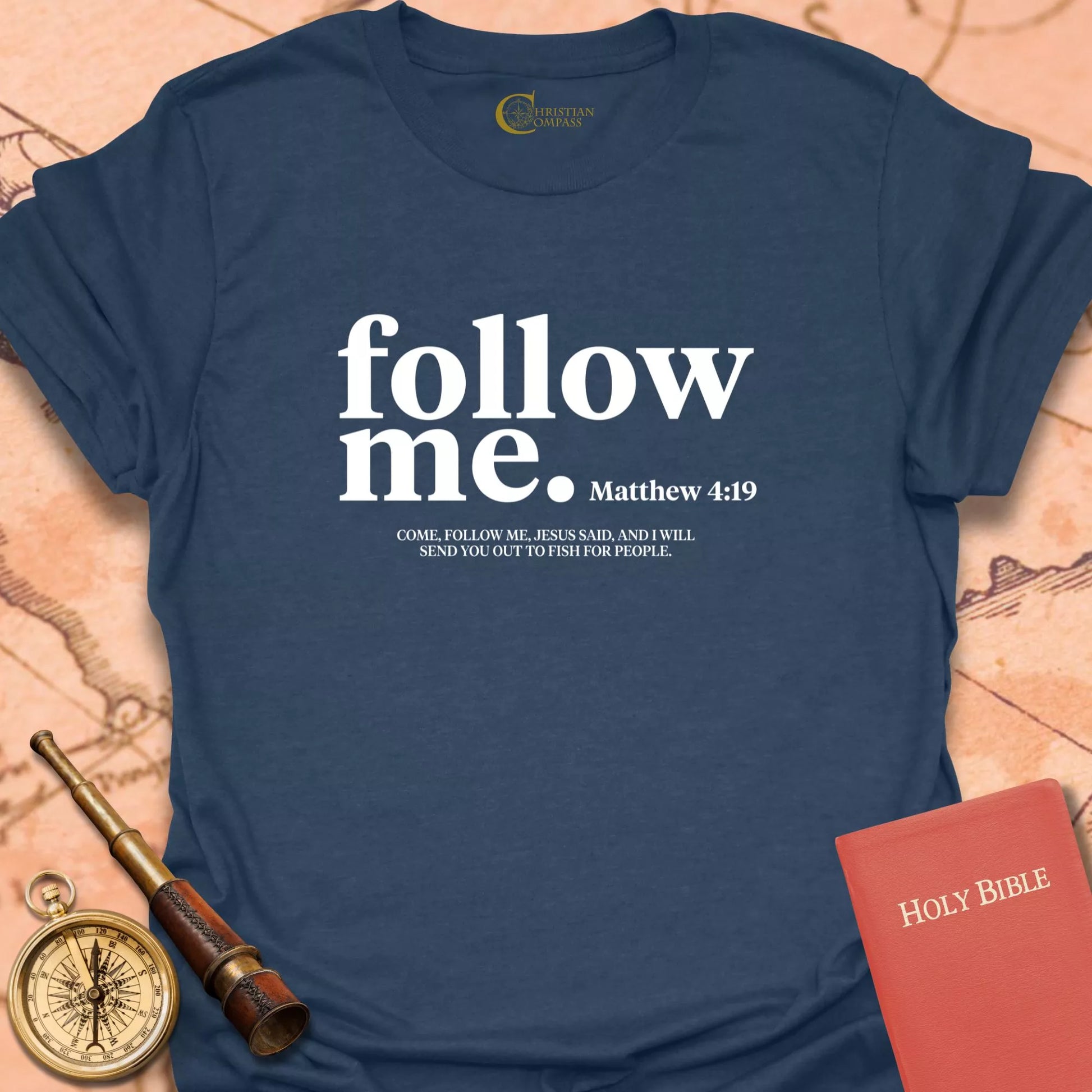 Follow Me Shirt | Matthew 4:19 Christian T-Shirt – Christian Compass Skip to content
