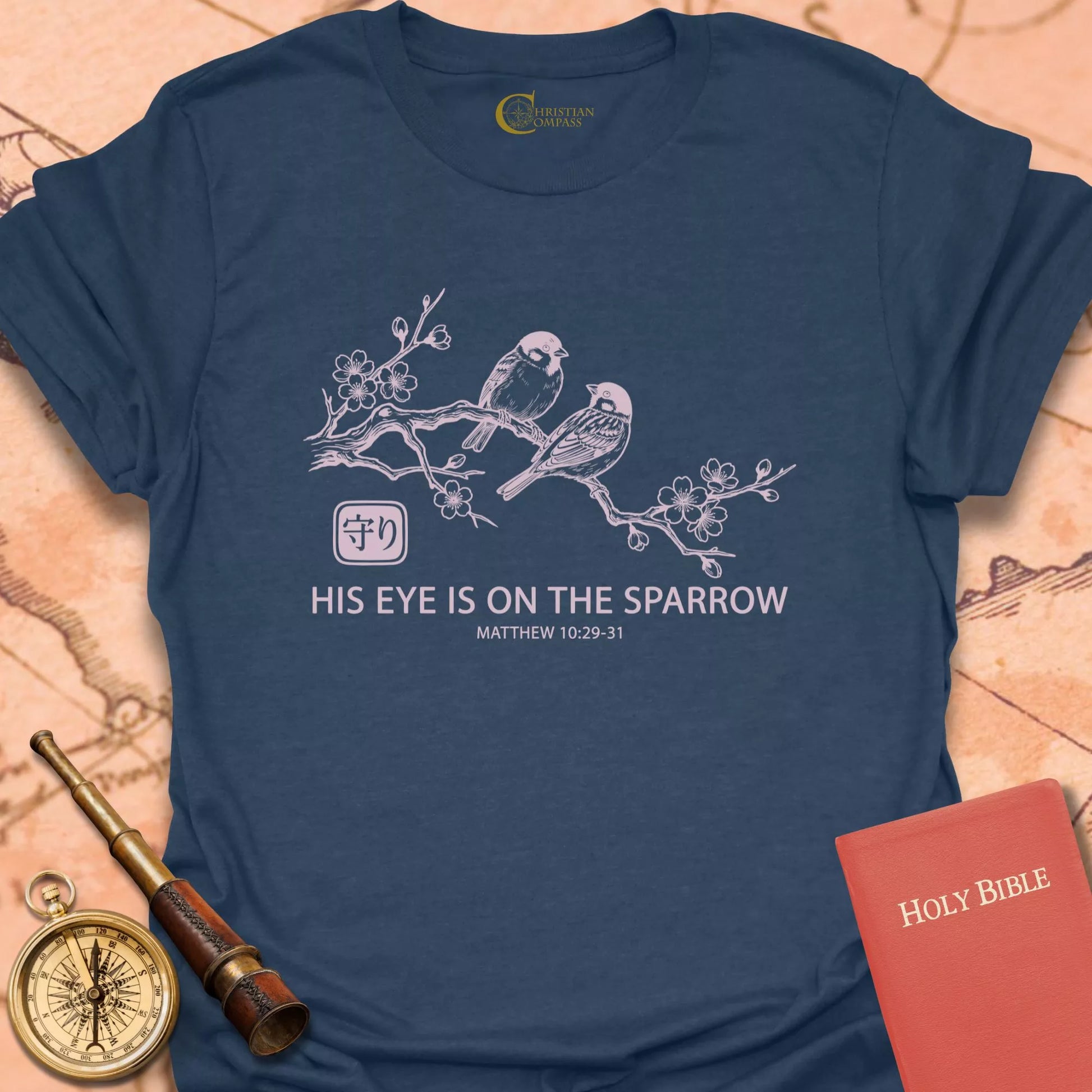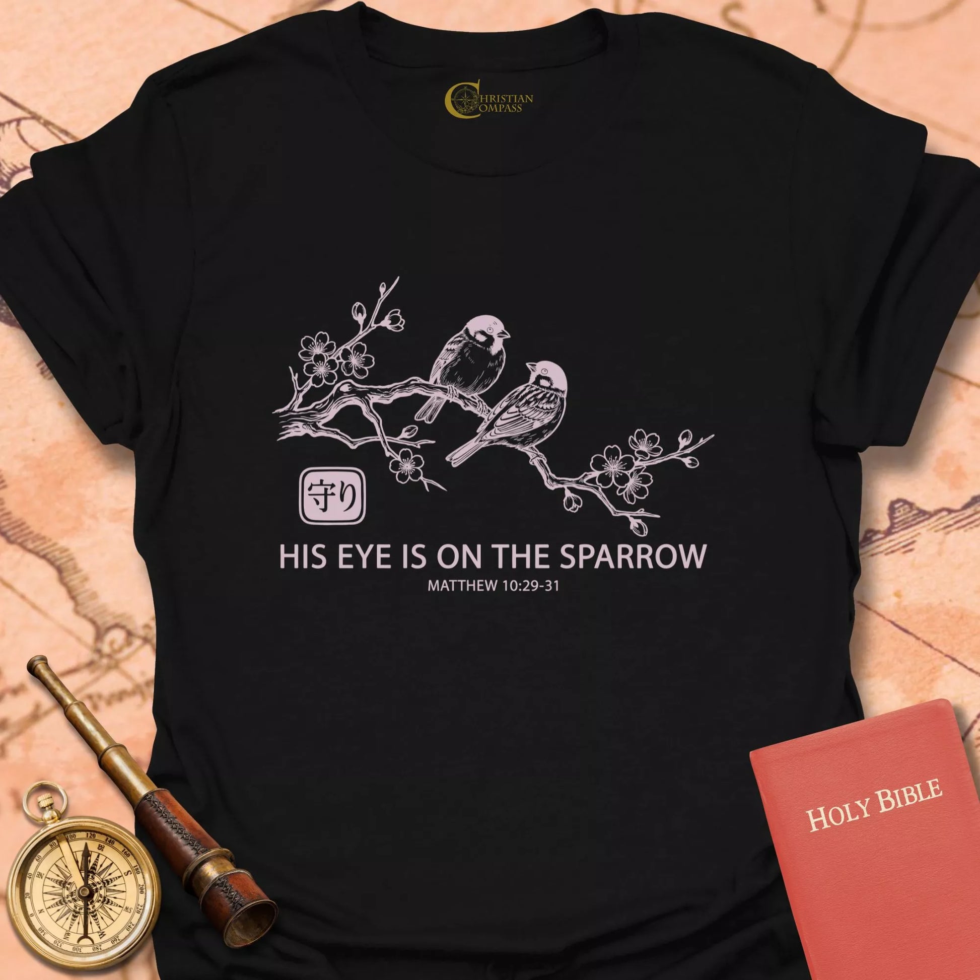 His Eye Is on the Sparrow Christian T-Shirt | Matthew 10 – Christian Compass Skip to content
