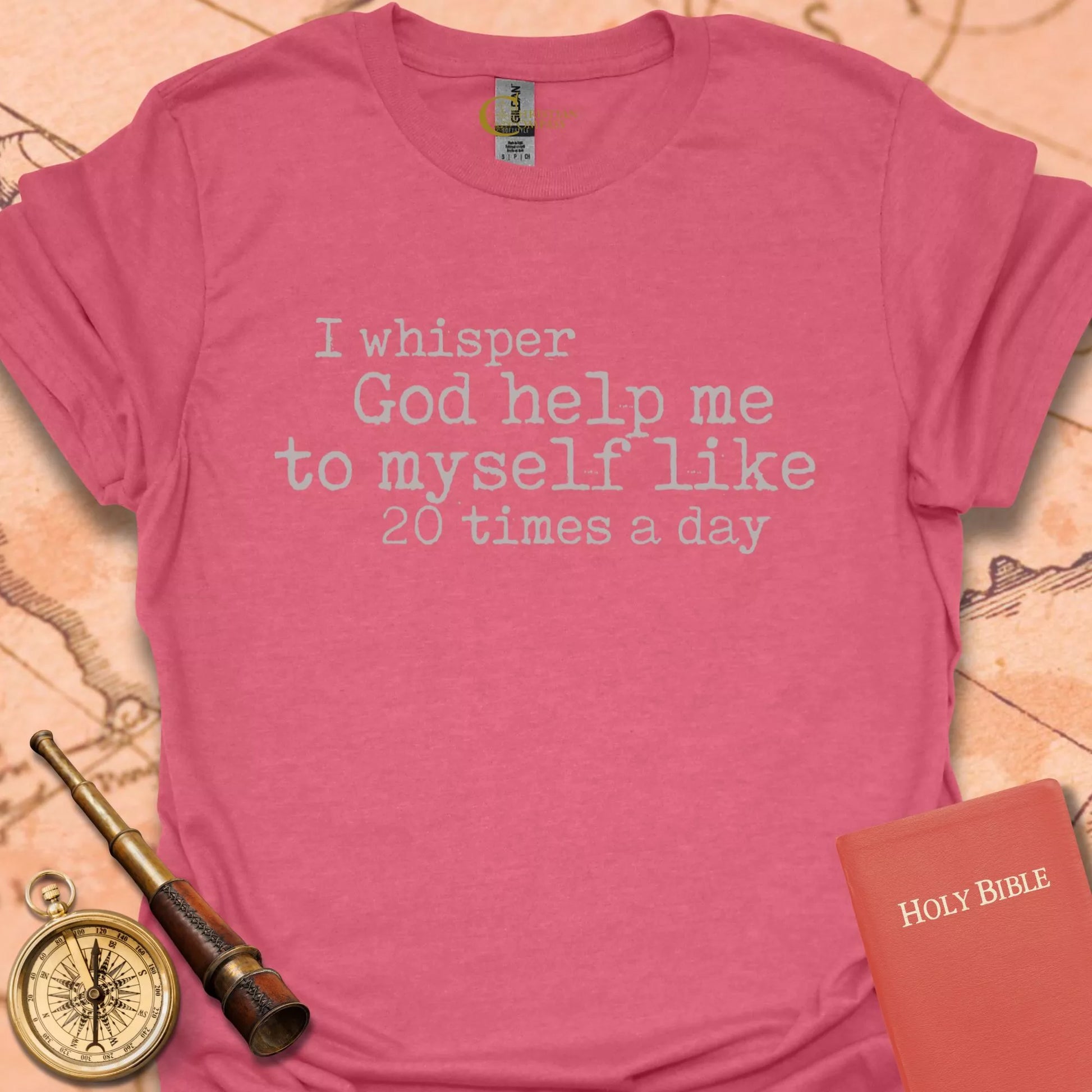 I Whisper “God Help Me” Tee | Christian Humor Faith Shirt – Christian Compass Skip to content