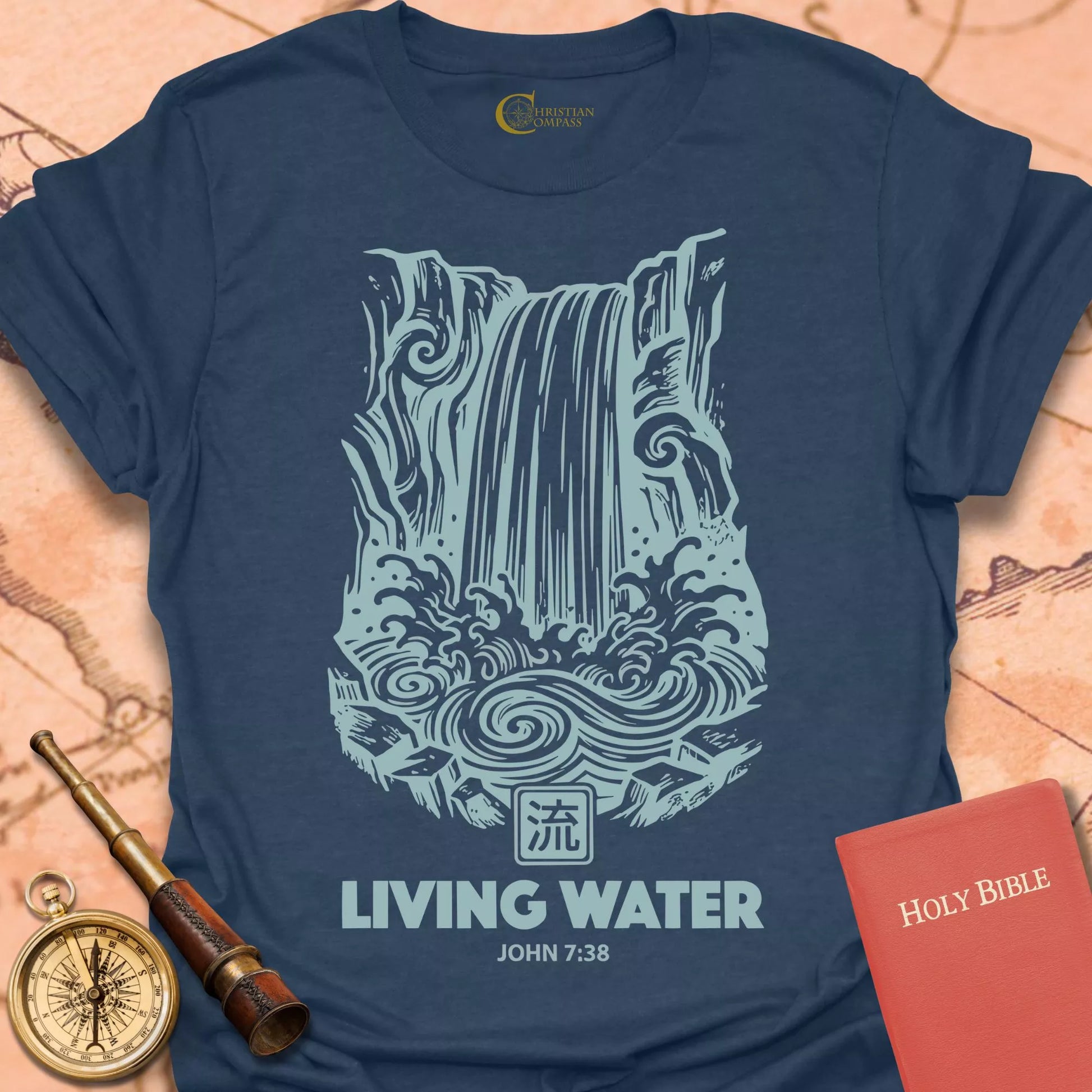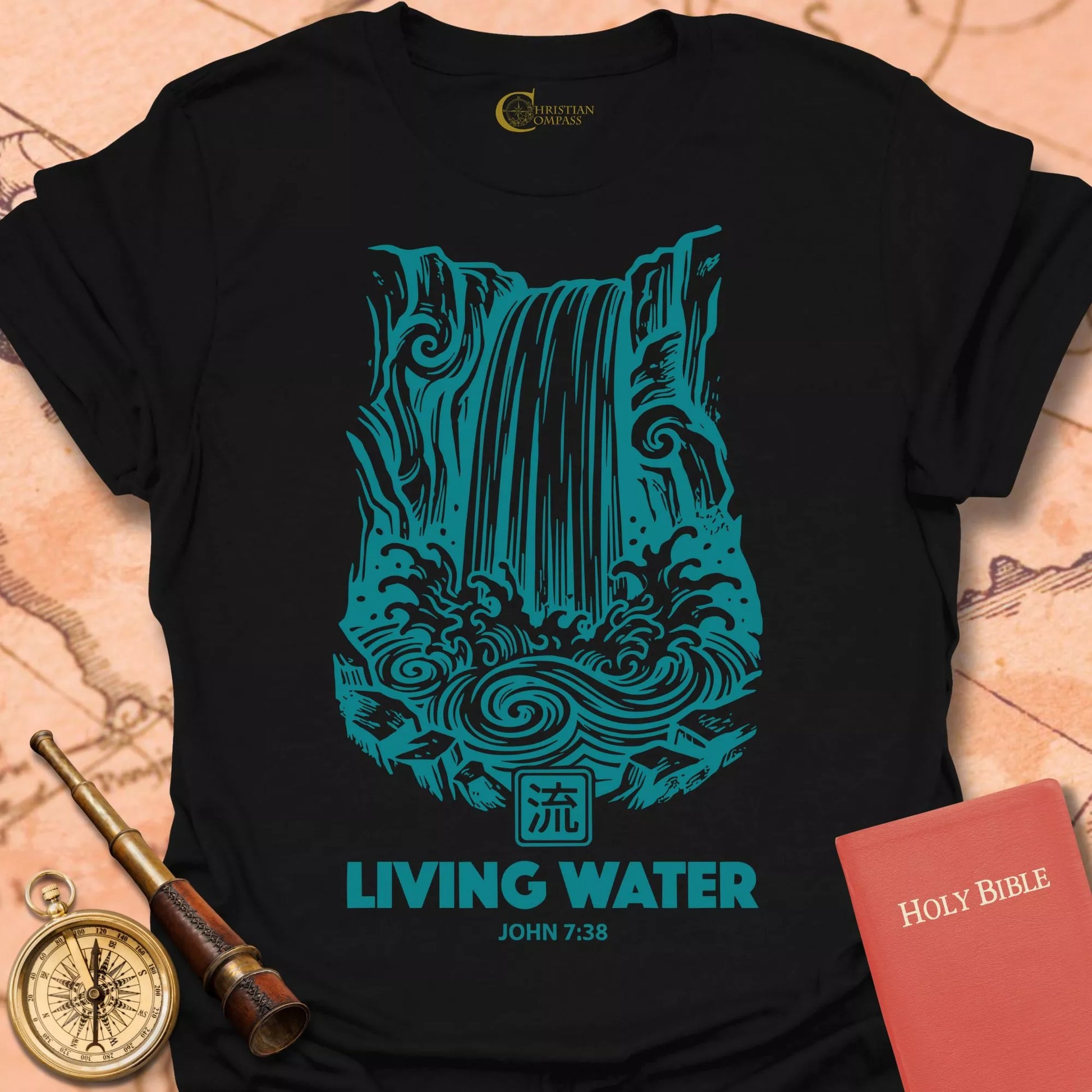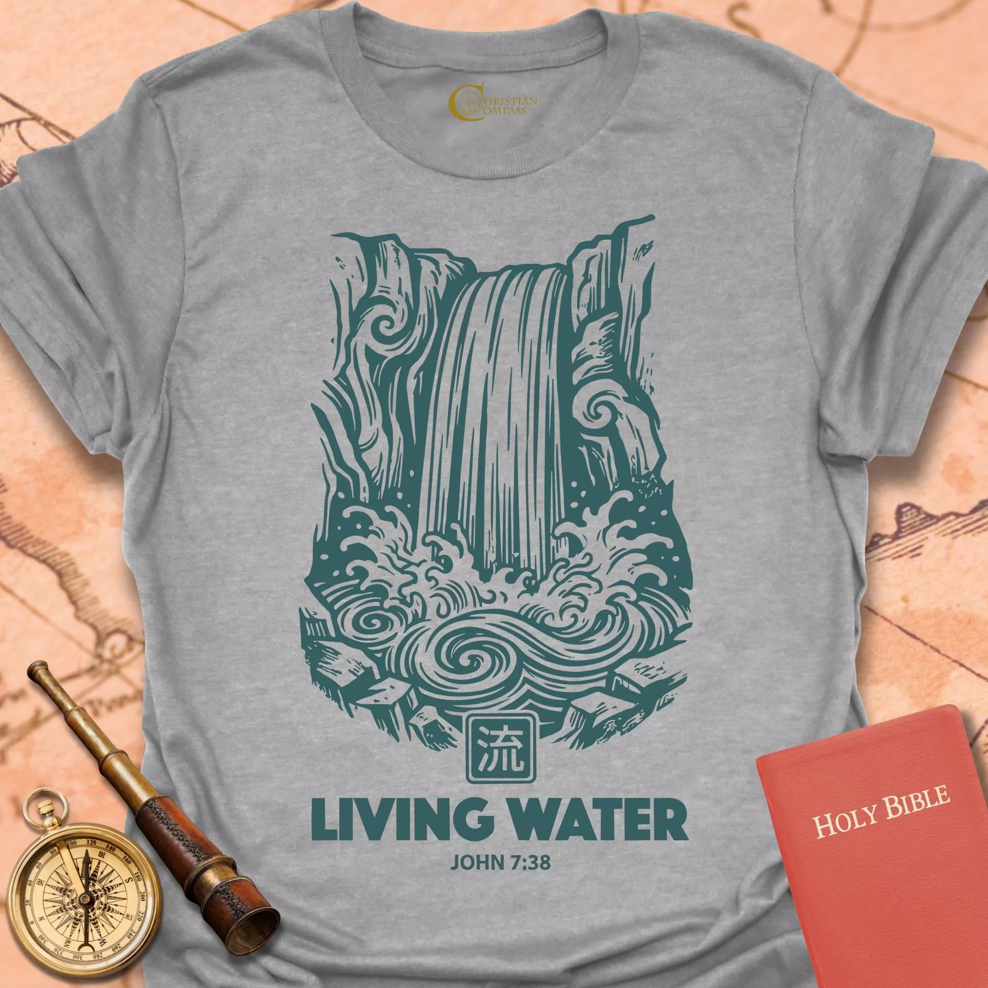 Living Water John 7:38 Christian T-Shirt – Christian Compass Skip to content