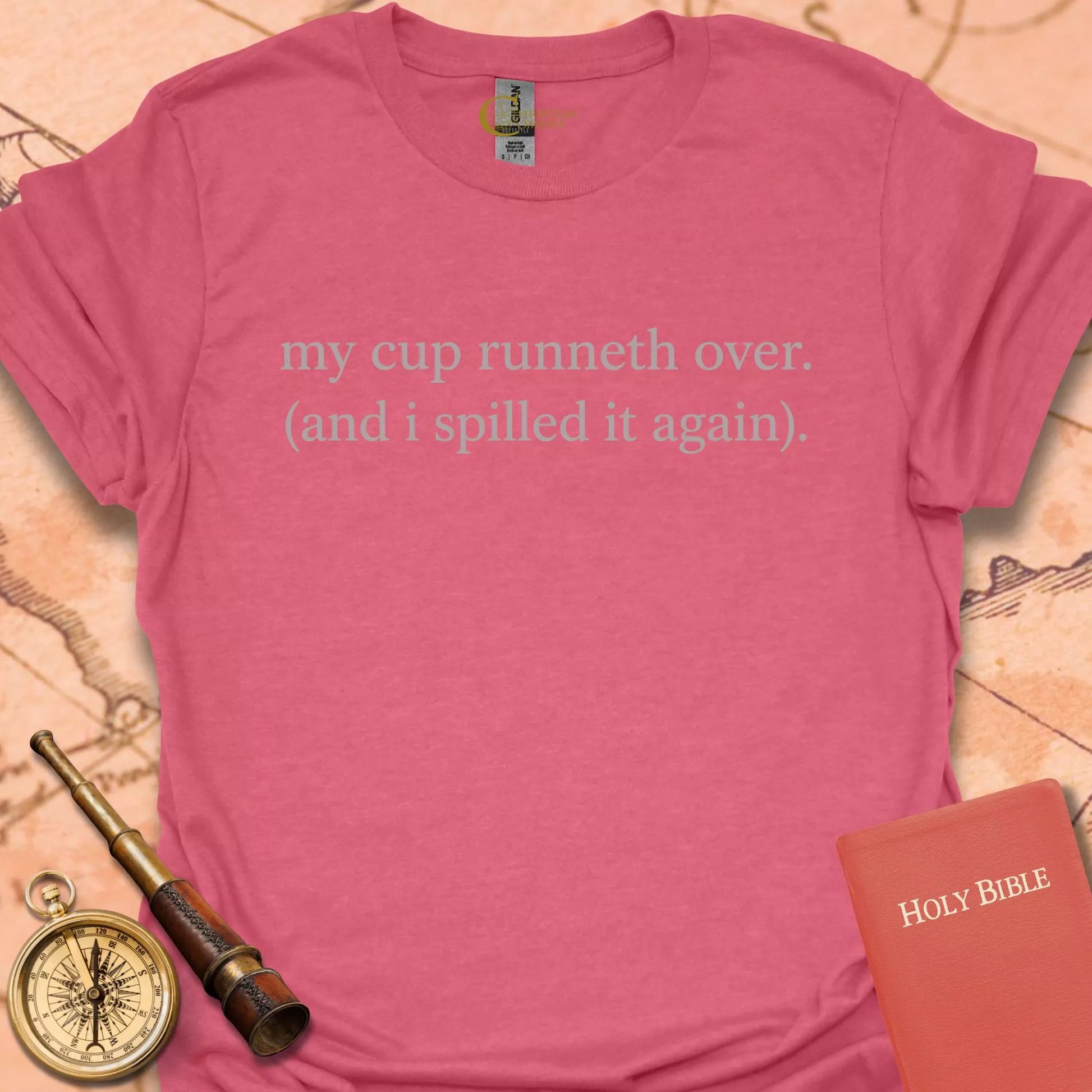 My Cup Runneth Over Christian Humor T-Shirt | Real Talk – Christian Compass Skip to content