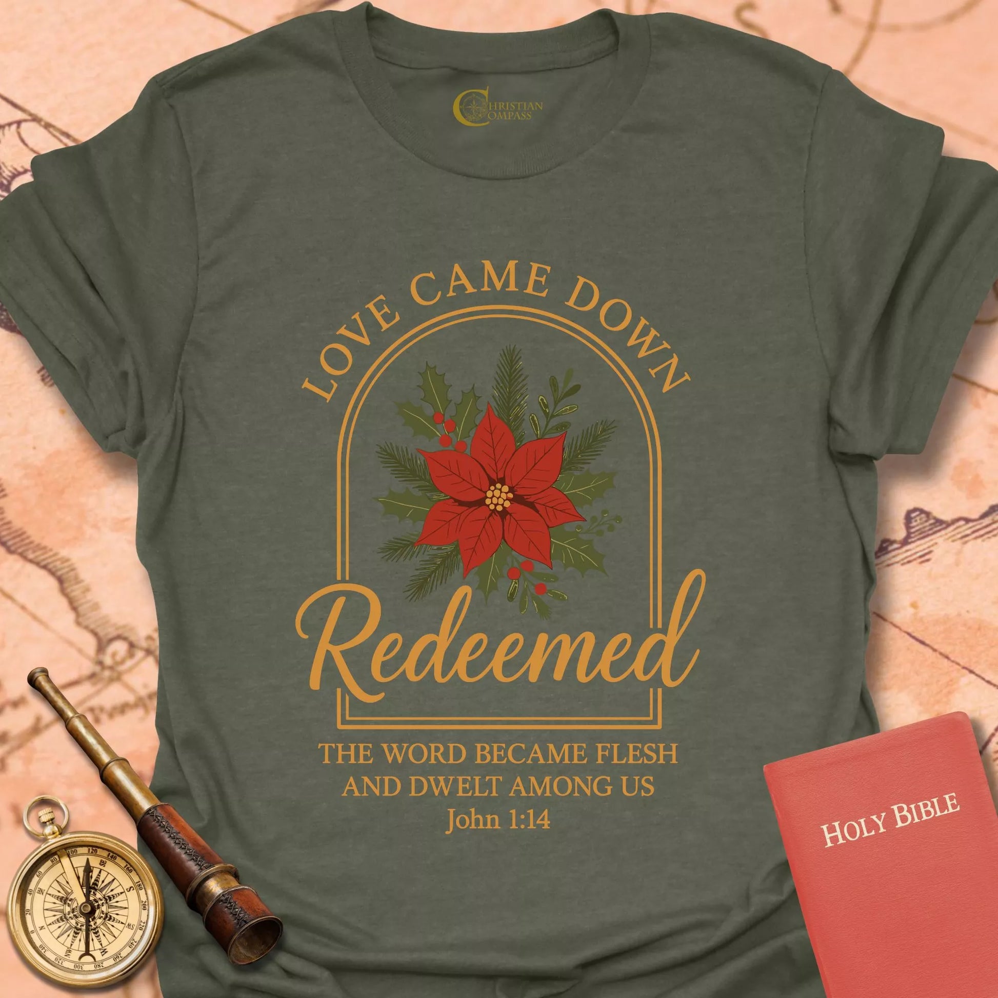 Redeemed Christmas Shirt – Love Came Down John 1:14 Tee – Christian Compass Skip to content